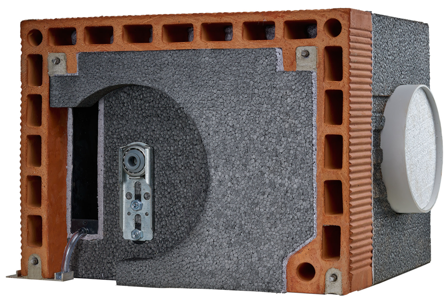 Dank AIR-ISO Technologie verfügen unsere Ziegelkästen über dezentral integrierte Lüftungen. Ein doppelt schallentkoppelter Lüftungsstein ermöglicht Be- und Entlüftung mit vollständiger Wärmedämmung durch das gesamte Segment. Das vormontierte Lüftungsrohr im Gefälle sowie die Kombination aus Ziegelschale und Neopor-Dämmteil sorgen für perfekten Wärmeschutz. Ideal für Neubauten und Sanierungen in Deutschland.